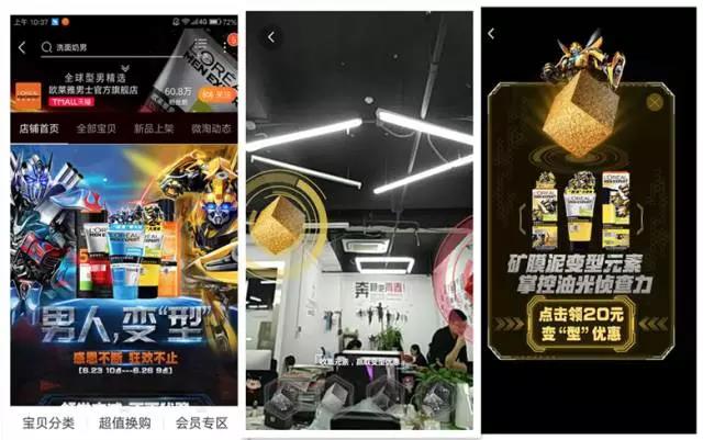 用Balue的话说,这是一个表达品牌态度的空间,以特别注重个性化表达的美妆为例, “店铺二楼”让大家看起来不一样了,也可以尝试不一样的消费者触达。拿这次变形金刚的项目为例,用户打开摄像头搜集能量块的操作,其实也领取了店铺的优惠券。