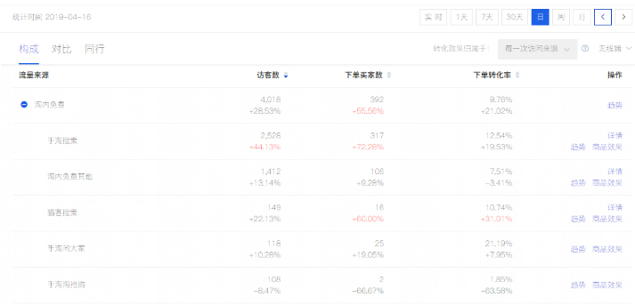 30天数据,一直在稳步提到,4.16号得到爆发,当天下单买家数251,商品访客数1645